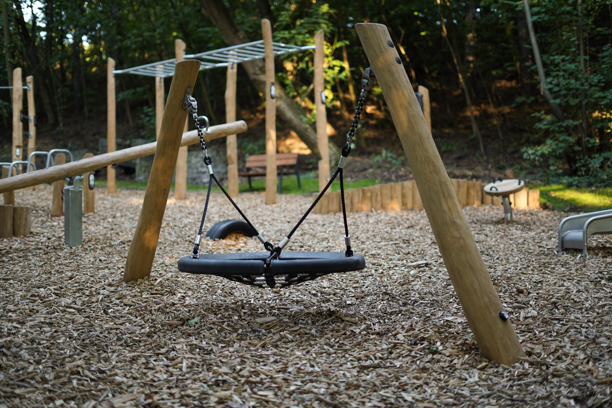Dětské hřiště je osazeno odolnými herními prvky KOMPAN z řady Robinia z akátového dřeva, které spojují přírodní vzhled s dlouhou životností a minimálními nároky na údržbu. Nabízí aktivní a hravý prostor pro nejmenší děti i pro ty, které hledají více akce – od domečku se střechou a pružinového houpadla, přes kolotoč a hbitostní lanovou dráhu až po oblíbené houpačky. Oplocení zvyšuje bezpečnost prostoru a přináší rodičům větší klid.